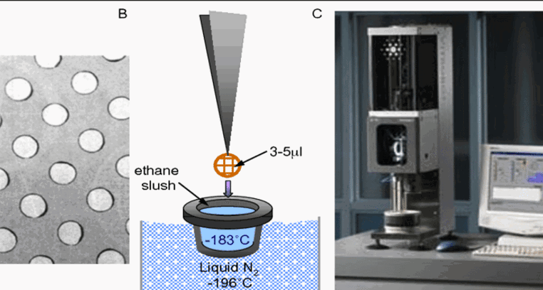 One of the most crucial steps in Cryo-EM is vitrifying biological samples on EM grids. During plunge freezing, a thin aqueous film containing biomolecules is applied to a grid and then rapidly plunged into liquid ethane (or propane) that has been pre-cooled by LN₂.